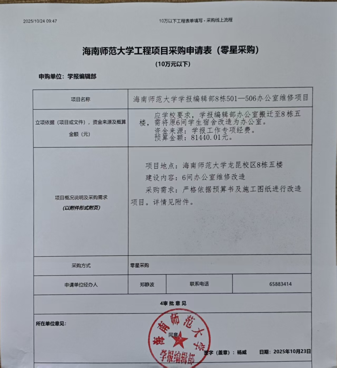 工程项目采购(零星采购)公示