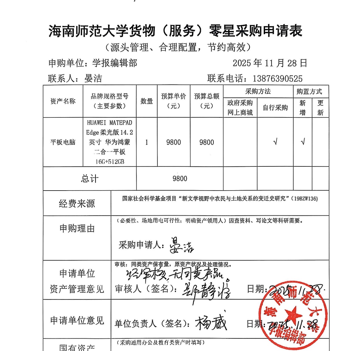 学报编辑部晏老师为开展科研工作,需购置一台电脑,现进行公示,公示期:2025年11月28日至30日,如有异议,请致电65883414.